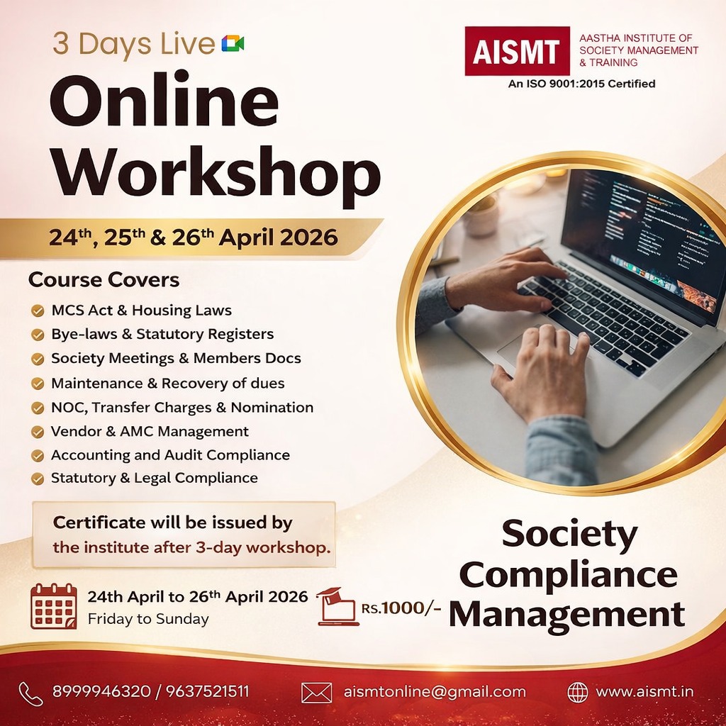 - Required Society Manager, Compliance Executive, Compliances Manager and Desk Manager for Society